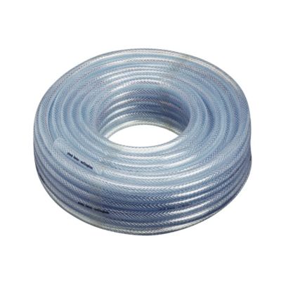 Forstærket PVC flettet kondensatslange fra Diversitech, ideel til afløb af kondensvand. Klar farve for visuel inspektion, 12 mm indvendig diameter, 16 mm udvendig diameter og et arbejdstryk på 6 bar.