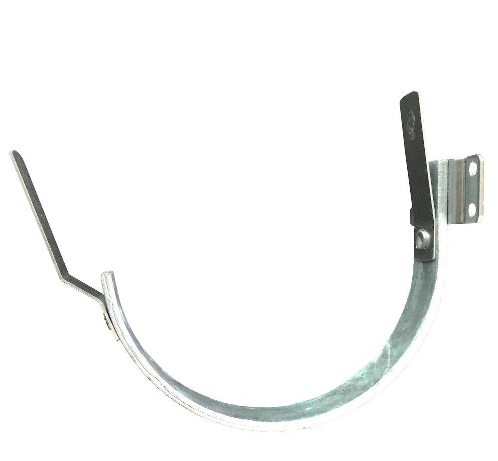Robust konsolrendejern i galvaniseret stål med for- og bagfjeder, designet til halvrunde tagrender.