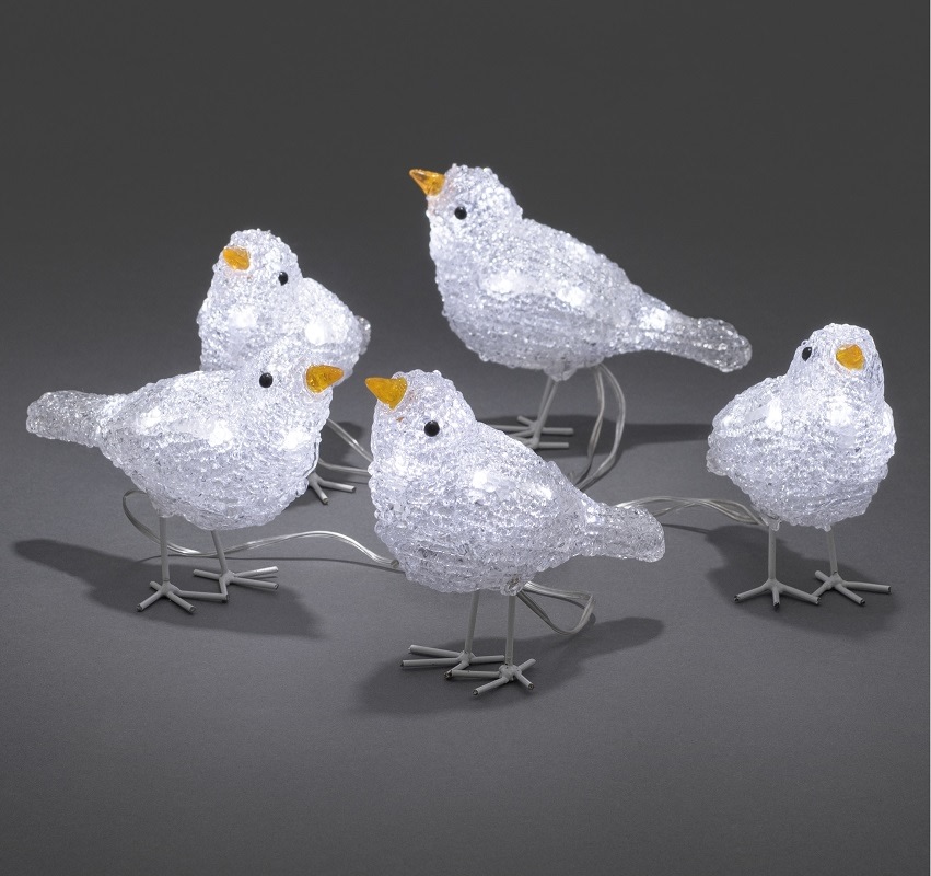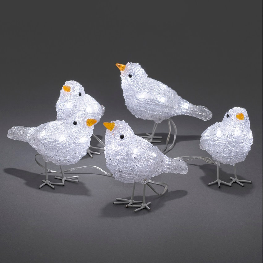 Konstsmide Akryl Fugle - hvid/klar, 5 fugle