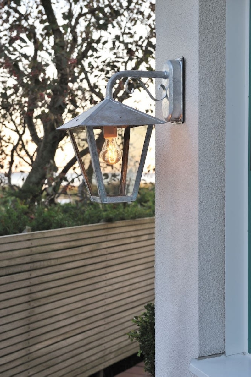 Klassisk Konstsmide Benu væglampe i galvaniseret stål. Designet til E27 sokkel (lyskilde ikke inkluderet). Perfekt til udendørs brug.