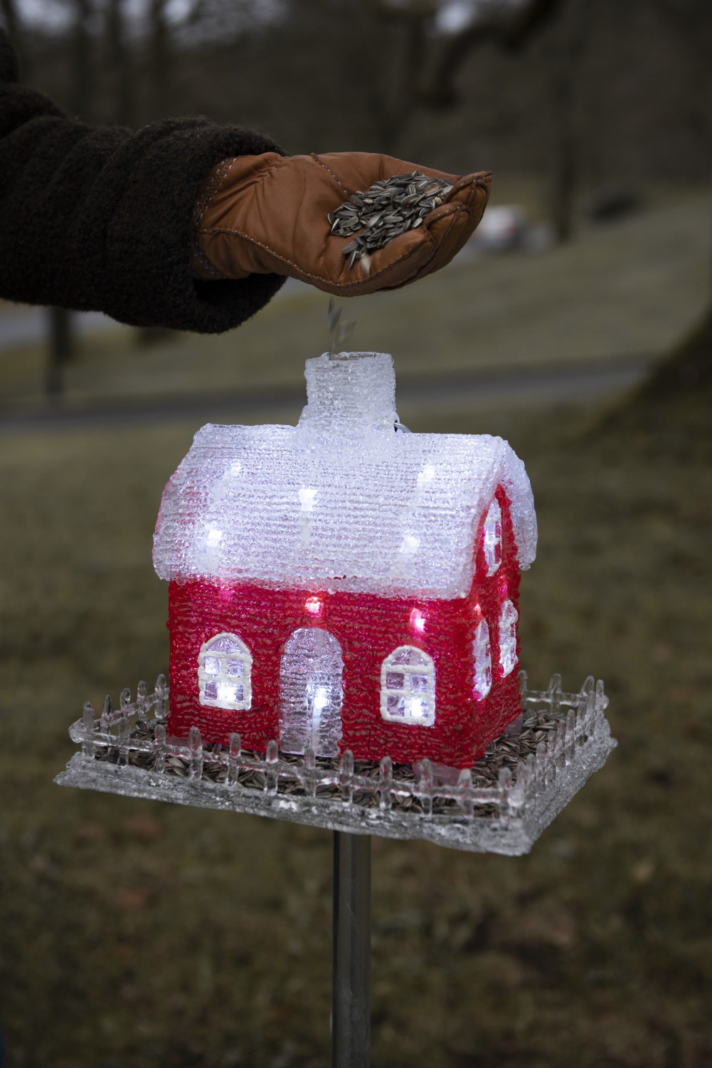 Fuglehus i akryl med hvide LED-lys fra Konstsmide