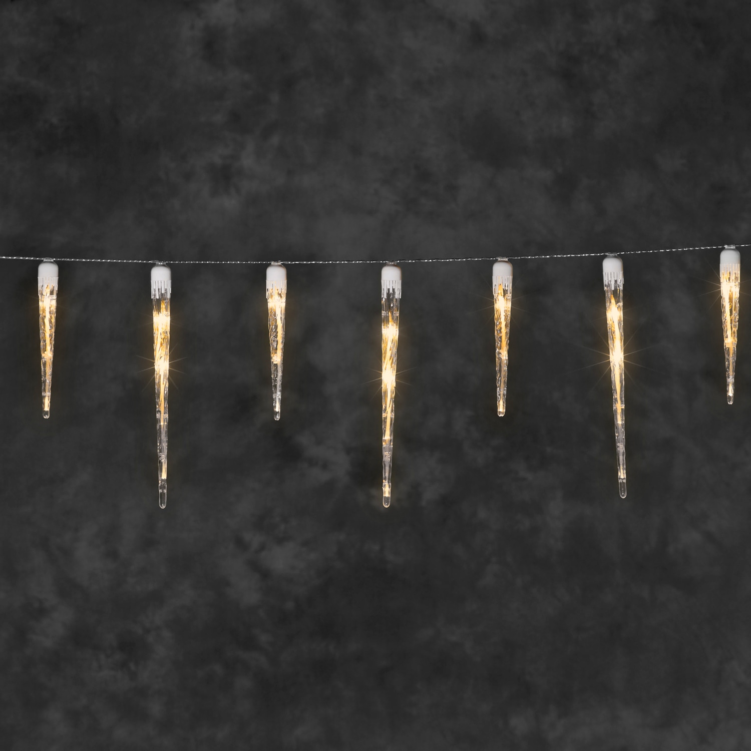 - Design: Lyskæden er designet med 32 istapper, der hver især er udstyret med ravfarvede LED-lys.
