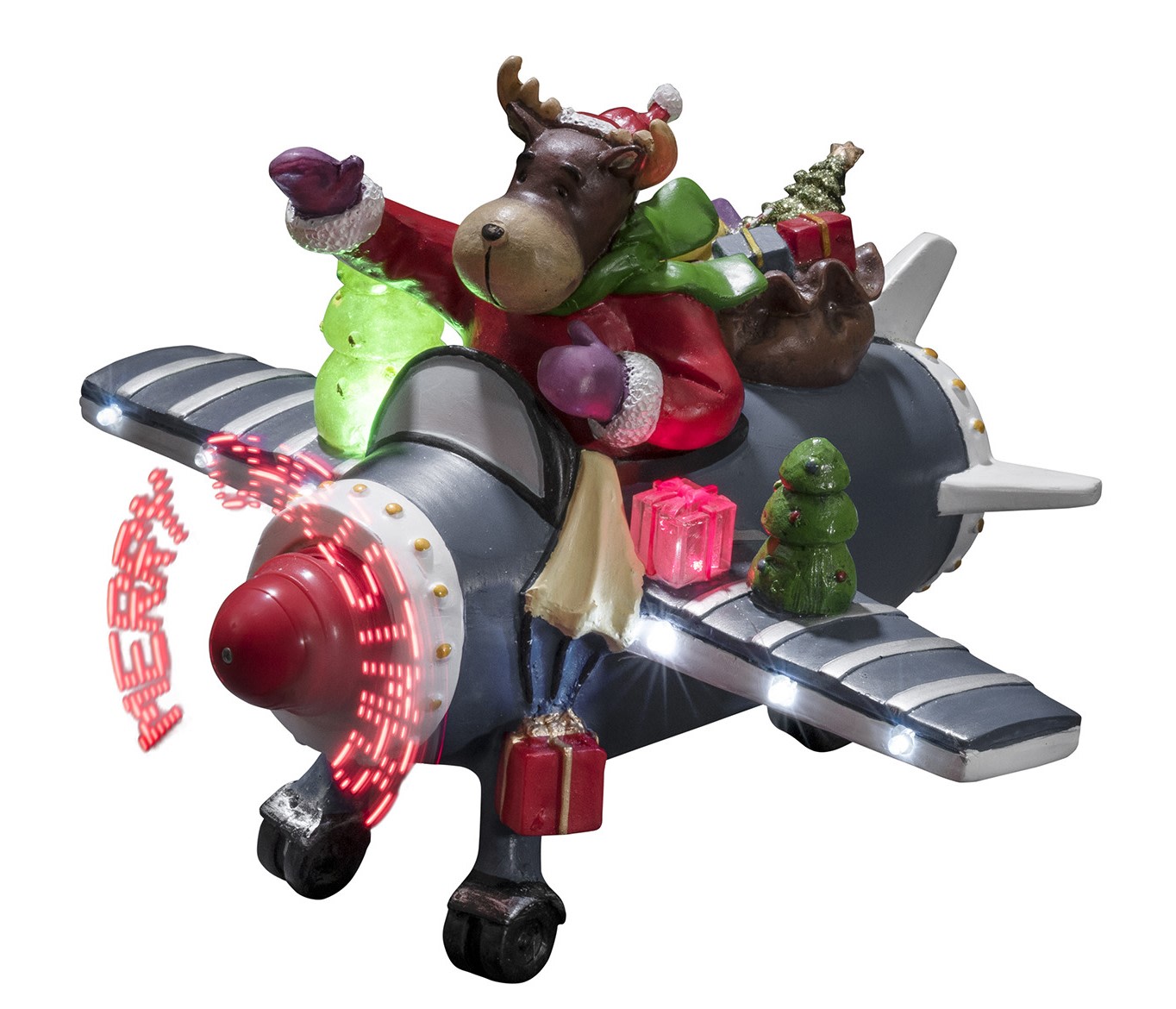 Juleflyveren er smukt dekoreret og har en indbygget sensor og timerfunktion, der styrer lyset i intervaller af 2 minutter. Den er ideel til indendørs brug og kan nemt placeres på en hylde, et bord eller i vindueskarmen.
