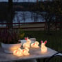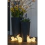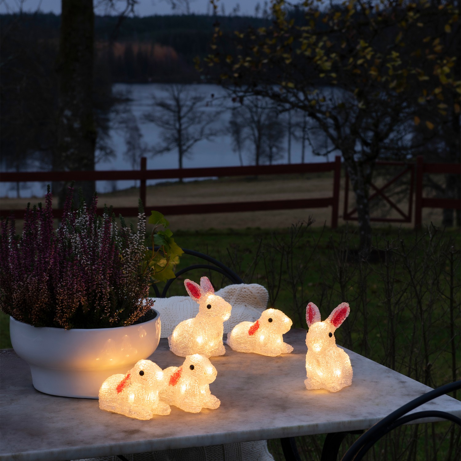 Sæt med 5 akrylkaniner fra Konstsmide, udstyret med 40 varmhvide LED-lys. Inkluderer 24V/IP44 transformer og 5 meter ledning.