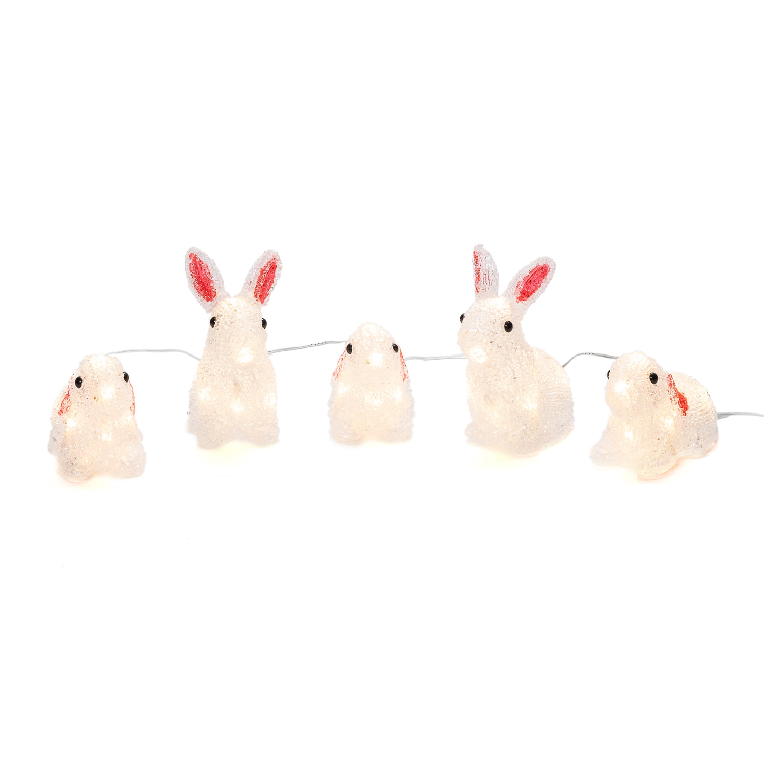 Kaniner i akryl, 5 stk., 40 varmhvide LED, 15/8 cm, hvid ledning - Konstsmide