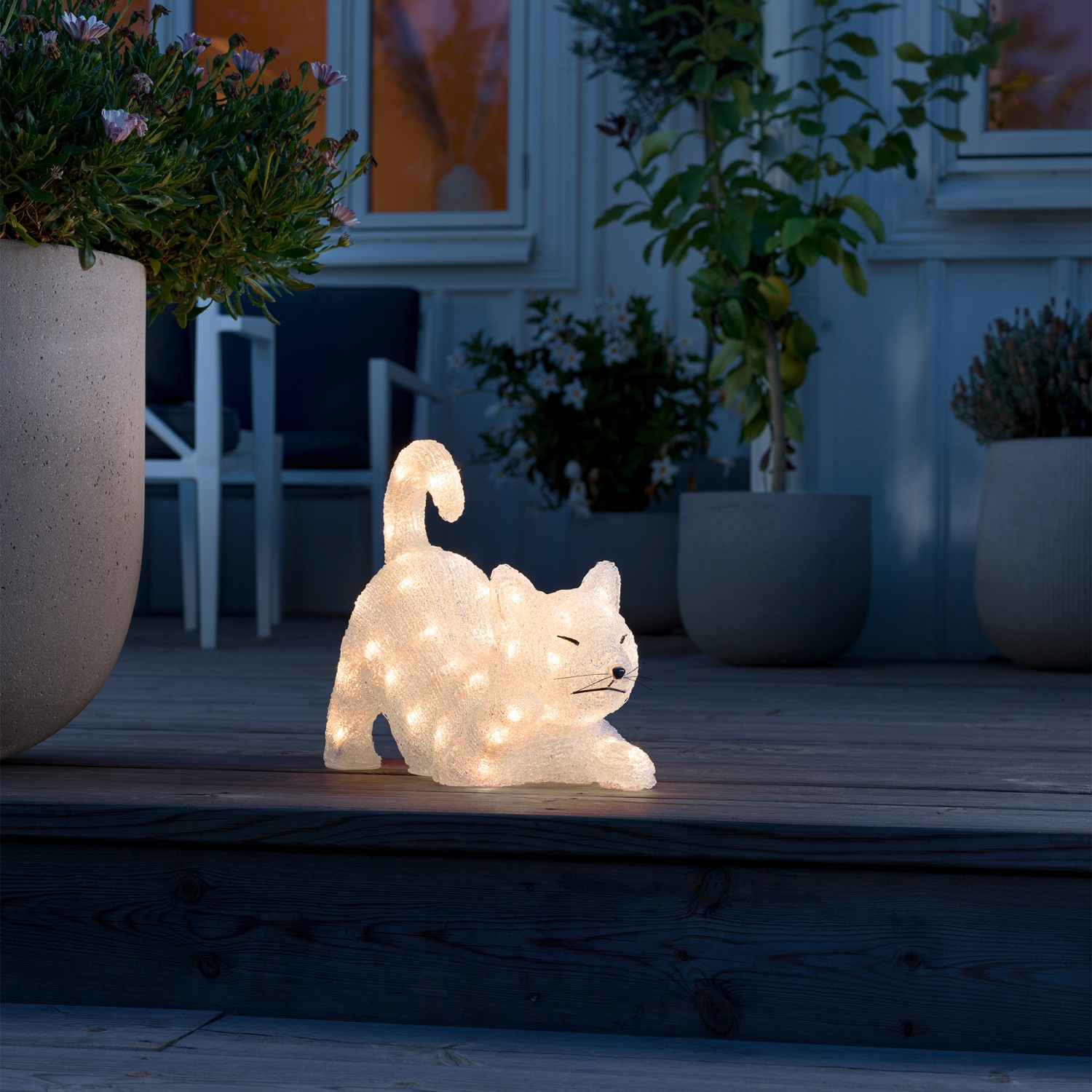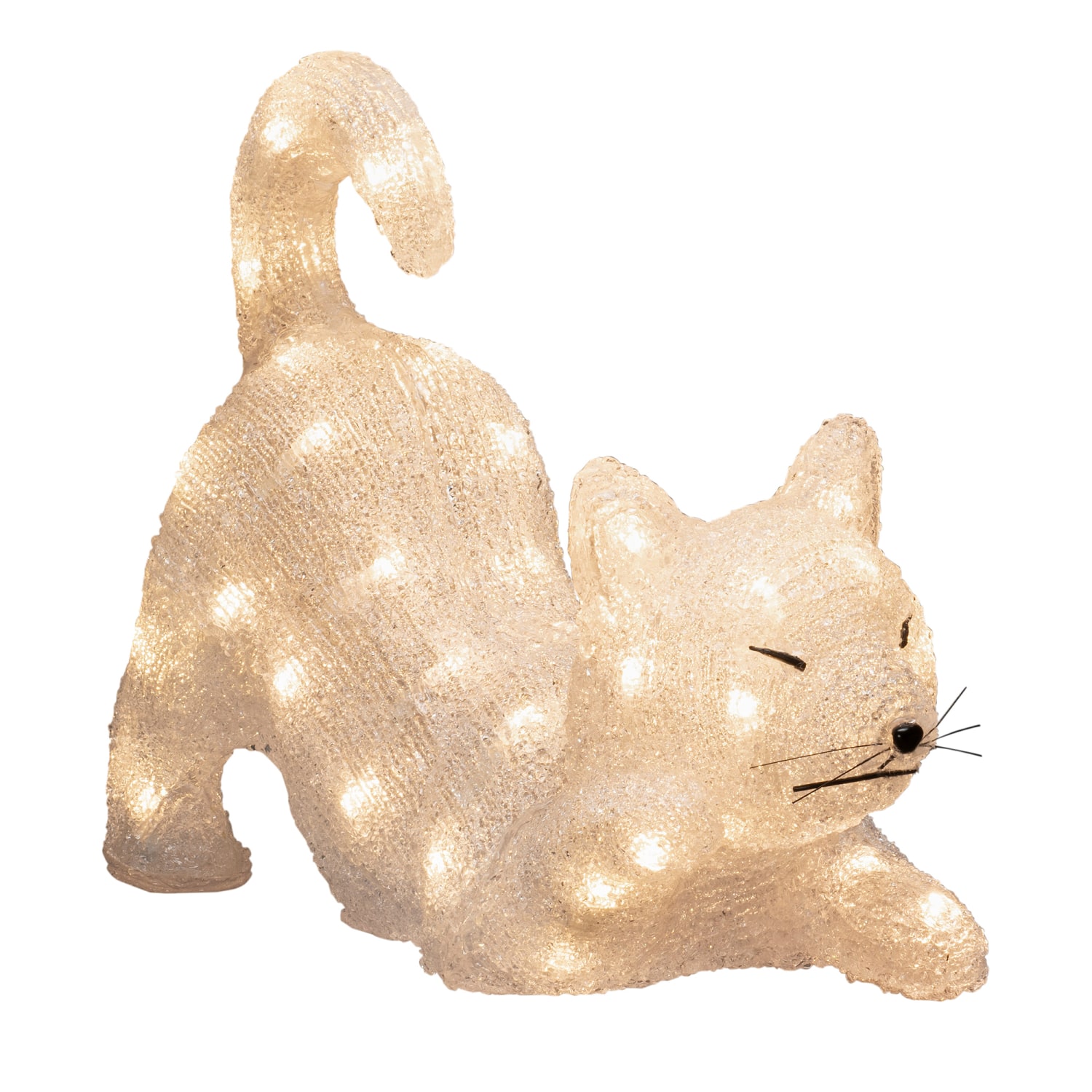 Liggende kat i akryl, 48 varmhvide LED, højde 28 cm - Konstsmide