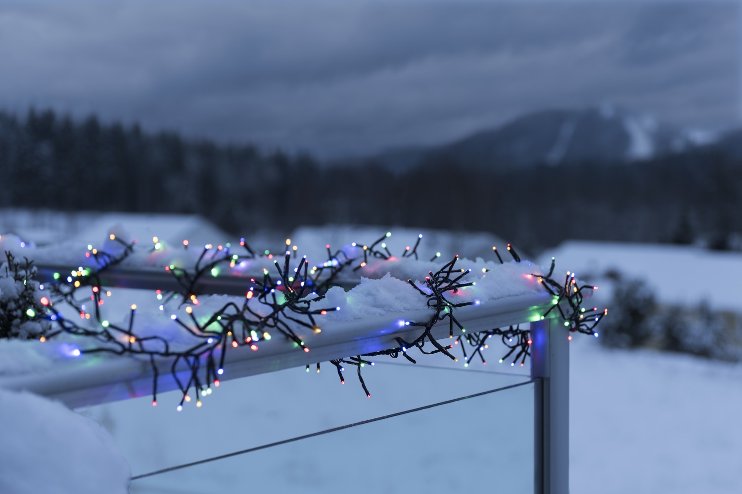 Denne Konstsmide lyskæde cluster er ideel til at skabe en hyggelig og festlig atmosfære både ude og inde. Med hele 960 farvede LED-lys fordelt over 7,2 meter, giver den et imponerende lysshow. Lyskæden er designet til at holde til udendørs forhold med en IP44-klassificering, hvilket gør den modstandsdygtig over for vandstænk fra alle retninger.