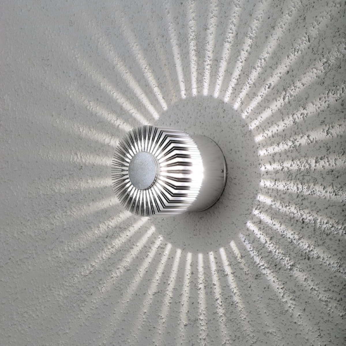 Konstsmide Monza væglampe med flotte dekorationslysstriber, der stråler 360 grader. Lampen er udstyret med en integreret og effektiv 3W Power LED pære, der sikrer et lavt strømforbrug.