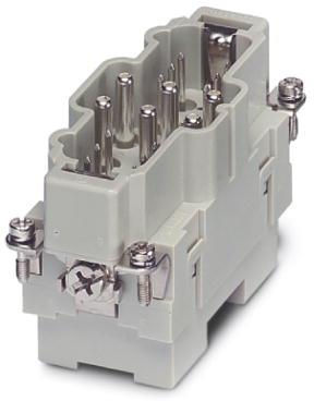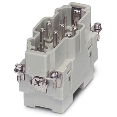 HEAVYCON-stiftindsats i K6/12-serien. Har 6 effektkontakter med aksial skruetilslutning og 12 styrekontakter med skruetilslutning.