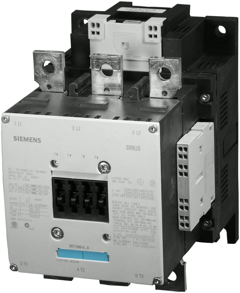 Kontaktor til brug i forskellige applikationer. Denne kontaktor er designet til 250kW/400V/AC-3 AC (40...60HZ)/DC spænding UC 200-277V og har hjælpekontakter 2NO+2NC.