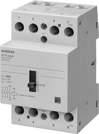INSTA kontaktor 0/1 automatisk med 3 NO og 1 NC kontakt for 230, 400 V AC, 40 A aktivering 24 V AC.