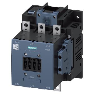 Kontaktor, 75kW/400V/AC-3, AC (40 ... 60Hz) / DC spænding UC 200 ... 277V hjælpekontakter 2 NO 2 NC 3-polet, størrelse S6 skinnetilslutning elektronisk drev med PLC interface 24V DC skrueterminaler.