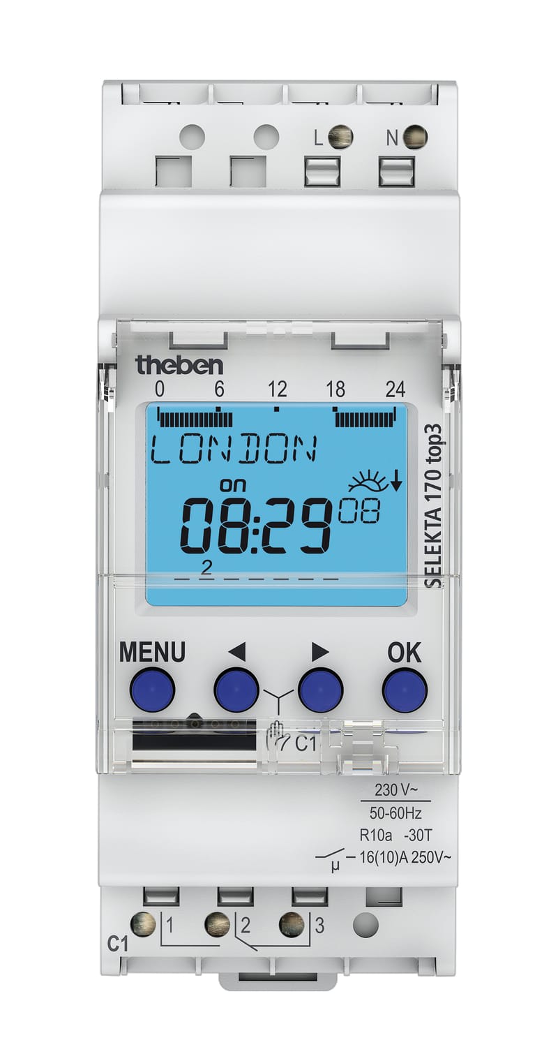Dette digitale astronomiske kontaktur fra Theben er ideelt til automatisk styring af belysning og andre elektriske apparater baseret på solens op- og nedgang.