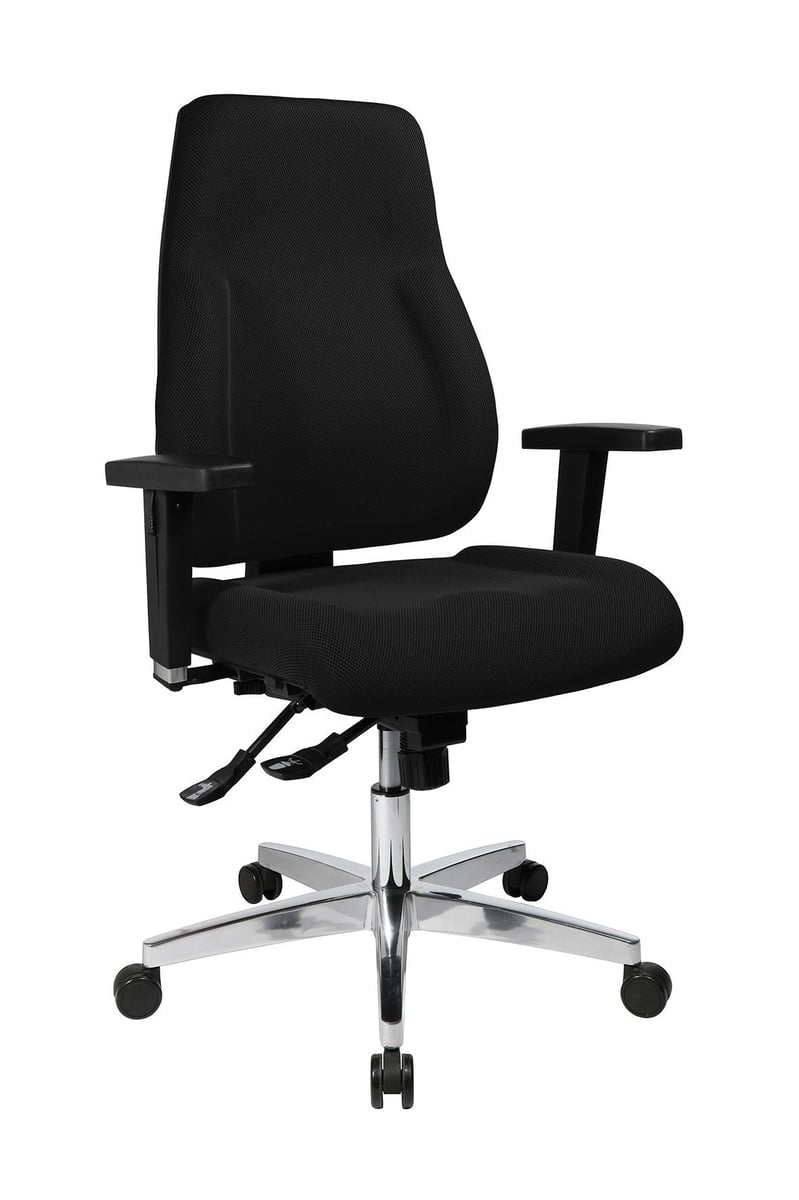 Kontorstol med poleret aluminium fodkryds, synkromekanisme og højdejusterbar ryglæn. Ekstra stort og bredt formstøbt sæde med dybdejustering og multifunktionelle armlæn.