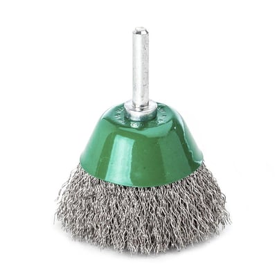 Børsten er fremstillet af rustfrit stål, hvilket sikrer holdbarhed og modstandsdygtighed over for korrosion. Den er monteret på et 6 mm skaft for nem tilslutning til passende værktøj.