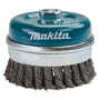 Effektiv kopstålbørste fra Makita på 100 mm med M14 gevind, ideel til overfladebehandling og fjernelse af rust eller maling.