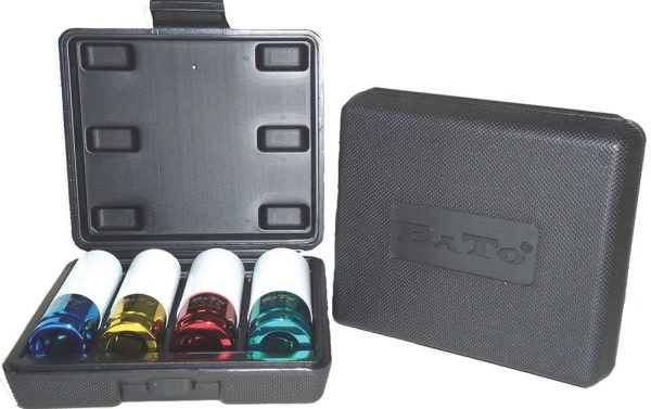 Krafttopsæt med 4 dele: 17, 19, 21 og 22mm. Inkluderer plastbeskytter til alufælge for at undgå mærker.