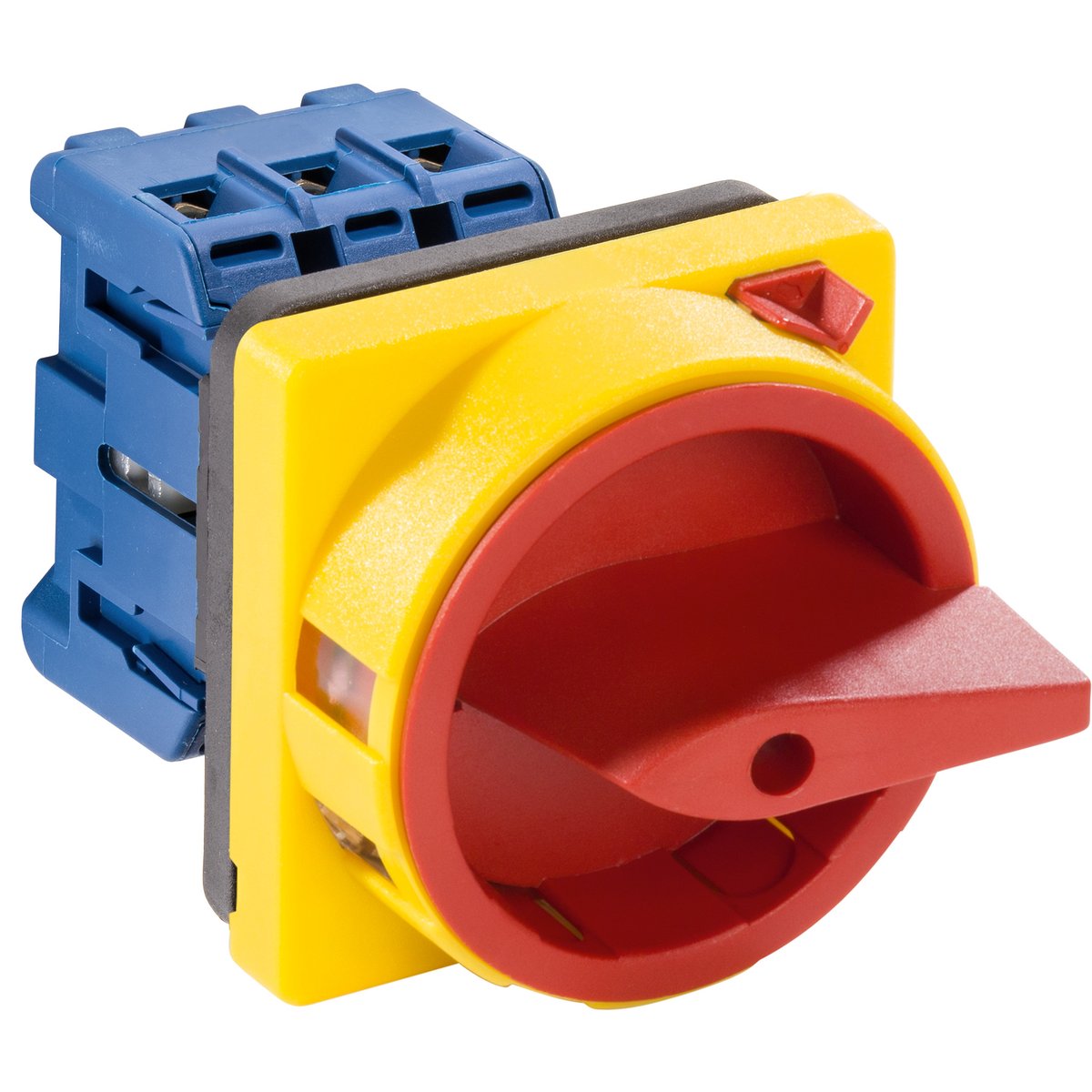 - Fås i versioner fra 20A-160A i 2, 3, 4 & 6 polet udgaver med enten med rød/gul og sort/grå greb samt til 1 hul eller 4 huls frontmontage samt bundmontage og til DIN skinne