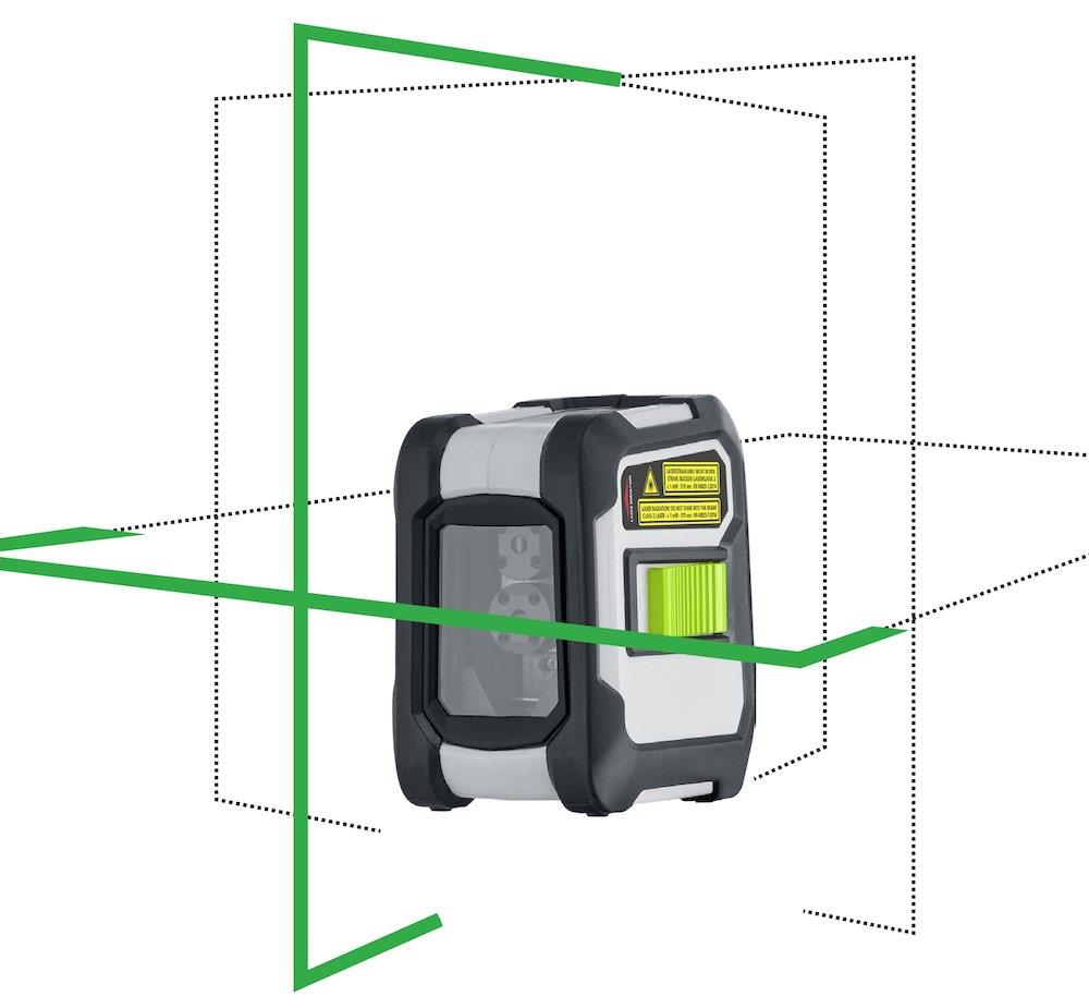 Oplev præcision med denne krydslaser med grøn laserteknologi, Bluetooth-fjernstyring og en rækkevidde på 30 meter. Perfekt til skarpe linjer og skrå flader.