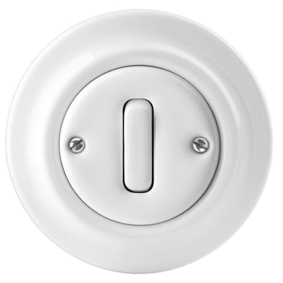 Klassisk retro krydsningsafbryder fra ABB's Decento serie med moderne teknologi. Porcelænsindsats og ramme leveres færdigmonteret. Min. afstand mellem dåser: 91mm.