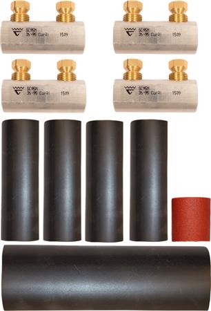 Komplet skruemuffekit til samling af aluminium- og kobberkabler. Opfylder IEC 61238-1 standard. Kun 4 kit dækker 10 mm² til 240 mm². UV-bestandig og godkendt til nedgravning.