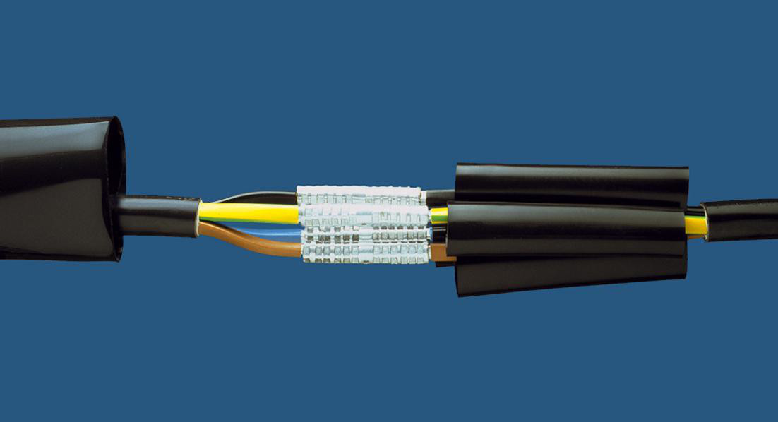 Raychem Mini krympemuffesæt type 4 x 120-300 mm² til samling af kunststofisolerede 1 kV kabler. Længde: 1000 mm.