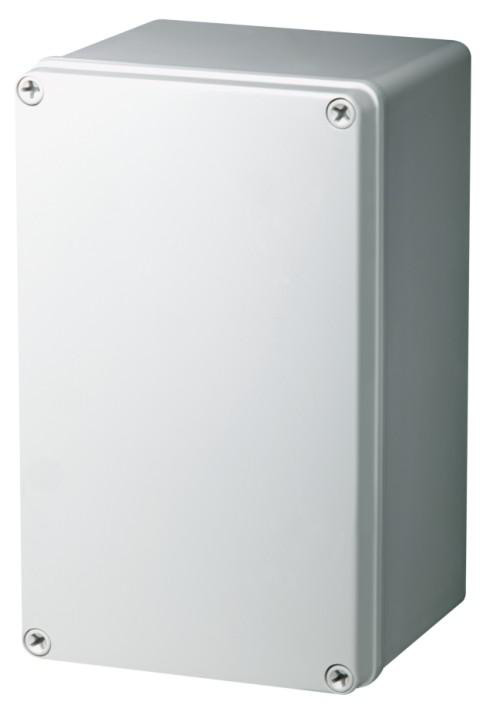 Piccolo kassebund med skruer til montageplade/DIN-skinne og gråt dæksel med PUR pakning og dækselskruer af polyamid.