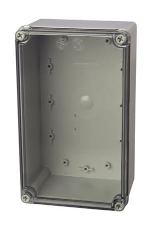 Montagekasse med transparent dæksel, PUR pakning og skruer. Ideel til montageplade eller DIN-skinne.