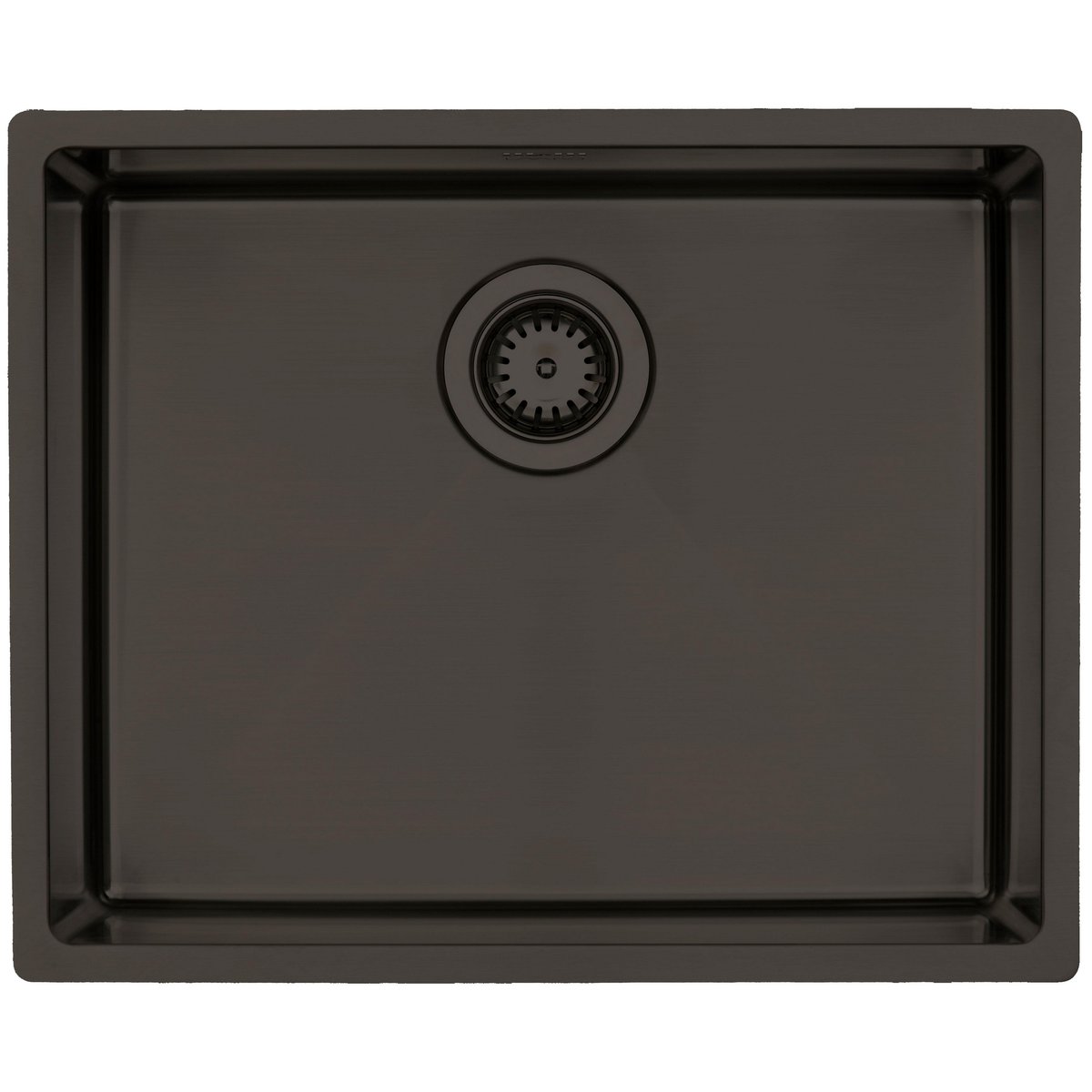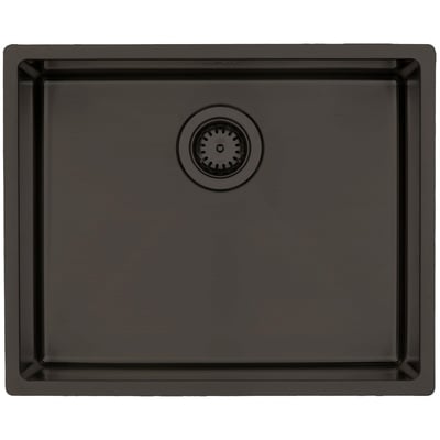 Køkkenvask, uden hanehul, i et moderne firkantet design. De indvendige runde hjørner følger vaskens yderkant, hvilket giver et harmonisk design, ligeledes er de indvendige runde hjørner rengøringsvenlige. Kuvertbunden betyder at vandet nemt løber i afløbet. ,Vasken kan monteres på forskellige måder: almindelig nedfældning, underlimning og planlimning.Der medfølger bundventil, vandlås og monteringsclips til nedfældning.Fremstillet i rustfrit stål med PVD* overflade behandling i farven Dark Bronze*PVD betyder Physical Vapour Deposition og er en trykpåført overfladebehandling som giver en slidstærk overflade.