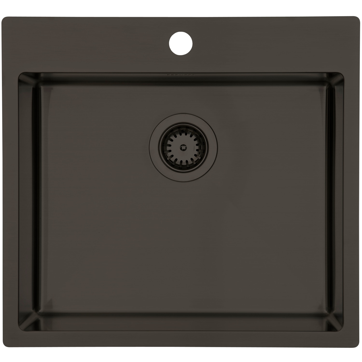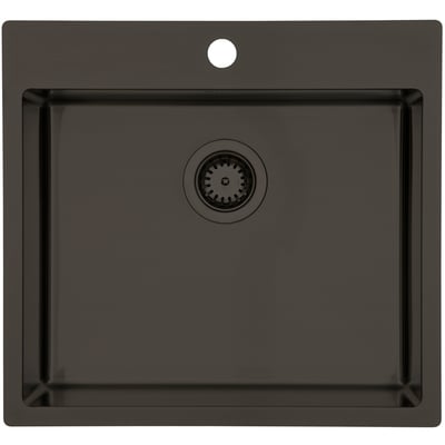 Køkkenvask, med hanehul, i et moderne firkantet design. De indvendige runde hjørner følger vaskens yderkant, hvilket giver et harmonisk design, ligeledes er de indvendige runde hjørner rengøringsvenlige. Kuvertbunden betyder at vandet nemt løber i afløbet. ,Vasken kan monteres på forskellige måder: almindelig nedfældning, underlimning og planlimning.Der medfølger bundventil, vandlås og monteringsclips til nedfældning.Fremstillet i rustfrit stål med PVD* overflade behandling i farven Dark Bronze*PVD betyder Physical Vapour Deposition og er en trykpåført overfladebehandling som giver en slidstærk overflade.