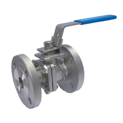 Syrefast 2-delt flangekuglehane med fuldt gennemløb til afspærring af væske, gasarter og damp i processanlæg. Med låsbart håndtag og ISO top til indirekte montage.