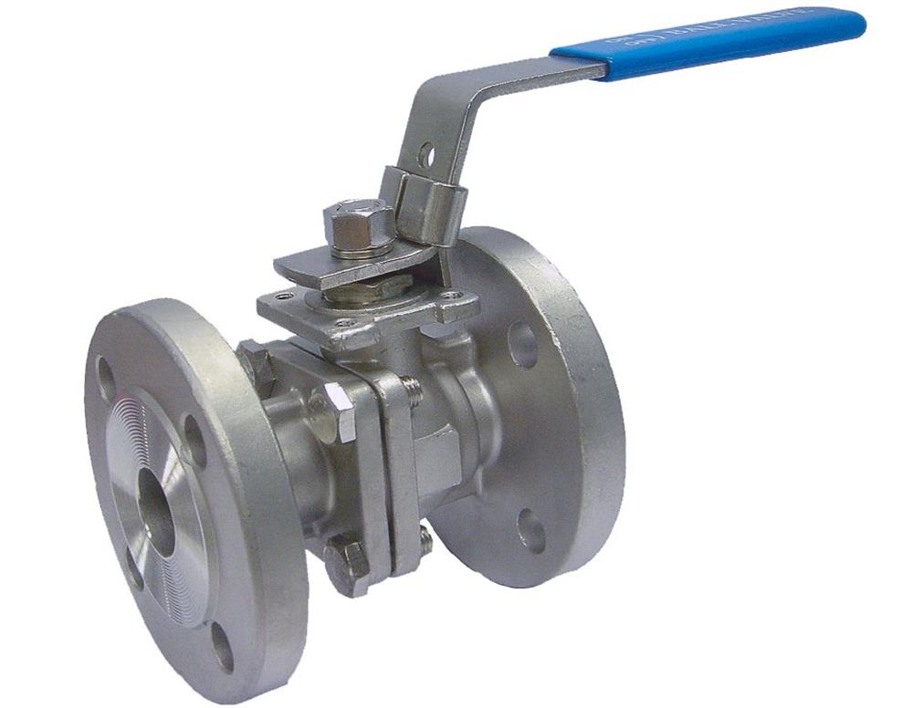 Syrefast 2-delt flangekuglehane med fuldt gennemløb, designet til pålidelig afspærring af væsker, gasarter og damp i industrielle processanlæg.