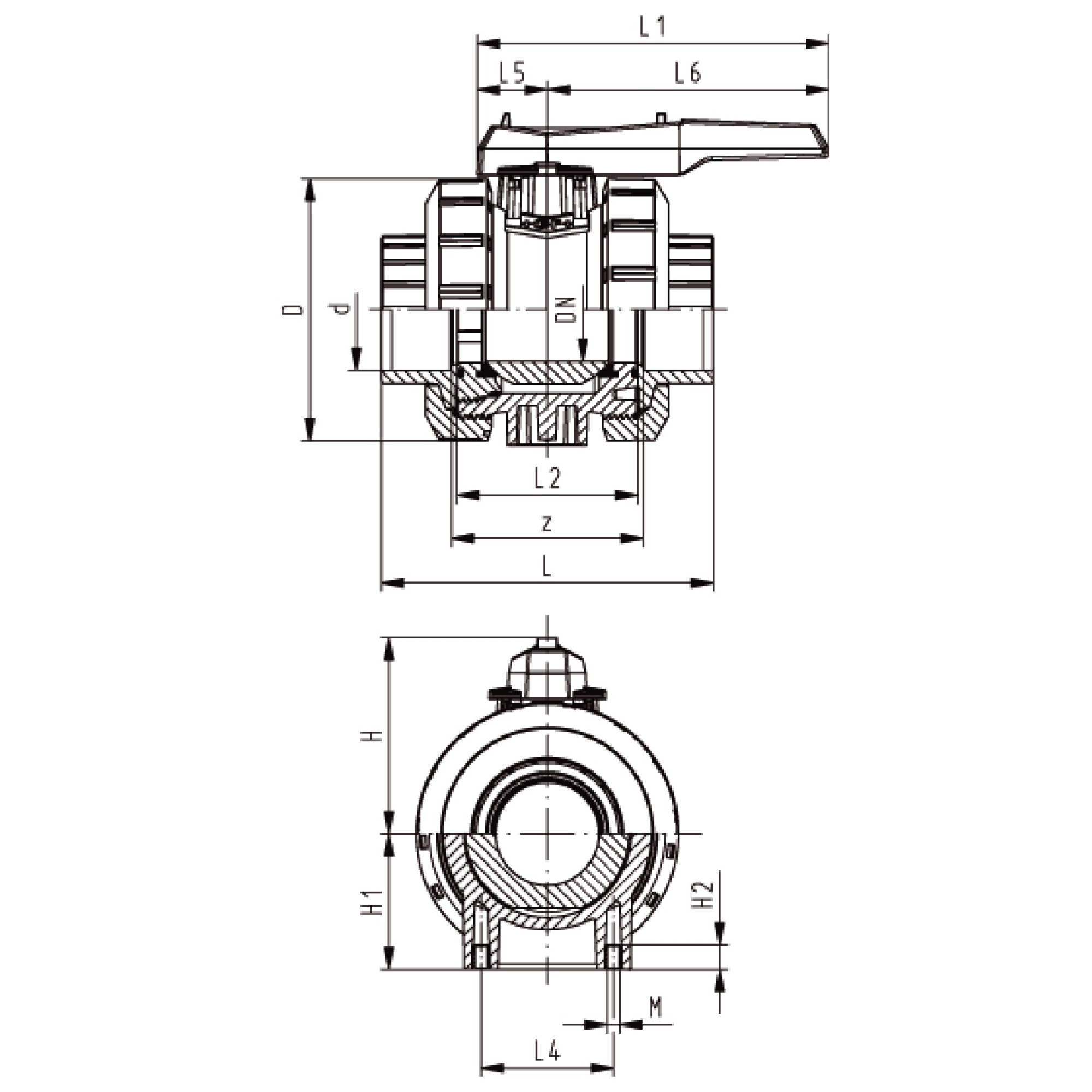 - Kan bruges med pneumatisk eller elektrisk aktuator fra +GF+