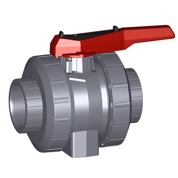 Denne Georg Fischer kuglehane er nem at installere og afmontere. Kugletætningen er lavet af PTFE og har integreret gevindbøsning til nem fastgørelse.