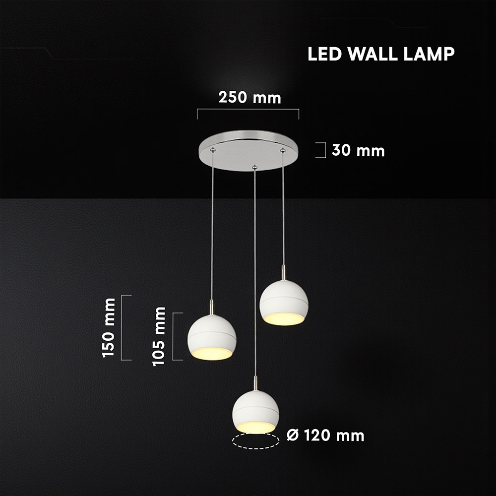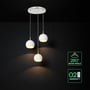 Elegant 3x10W LED pendellampe med 3600lm lysstyrke og 3000K varmt lys. Fremstillet i keramik, metal og akryl med børstet nikkel og hvid finish. IP20 klassificeret.