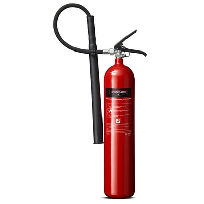 5 kg CO2-slukker fra Housegard. Bruges til brande i elektrisk udstyr og væsker. Efterlader ingen slukningsrester. Ideel til kontorer, serverrum og hospitaler.
