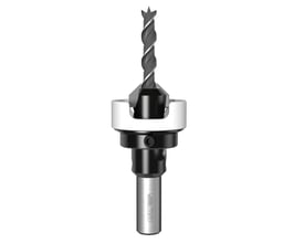 Kunsbor med cylindrisk kolbe, centerspids og to skær (Z2). Bruges til at bore lukkede huller i blødt træ og er ideel til hængsler.