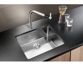 Kurveventil med skrue, 18 huller og en diameter på 80 mm fra Blanco.