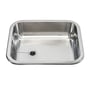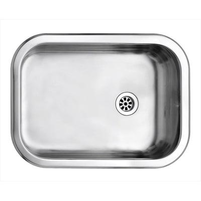 Syrefast rustfri stålvask med poleret overflade, designet til underlimning. Inkluderer overløb og plastprop.