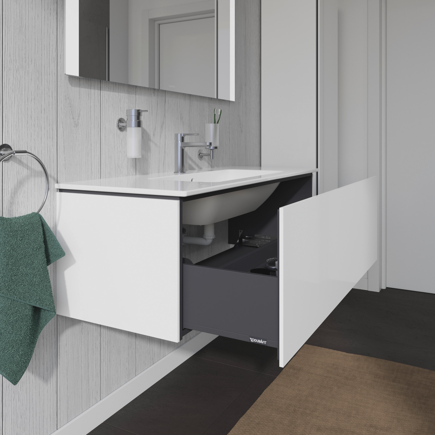 Elegant L-Cube underskab fra Duravit til ME serien med 1 udtræk.