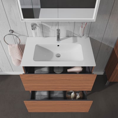 Elegant L-Cube vaskeskab fra Duravit med to skuffer til badeværelset.