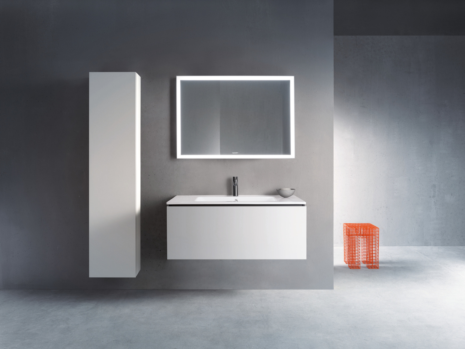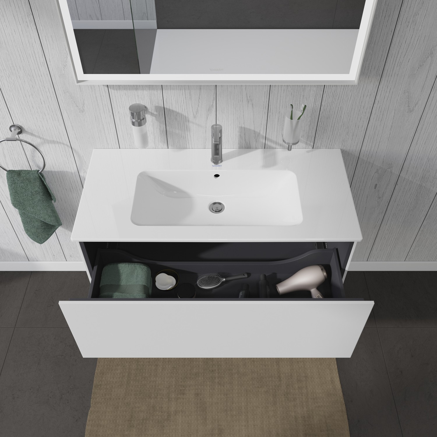 Elegant og minimalistisk vaskeskab fra Duravit. Hvid mat finish og en skuffe til opbevaring.