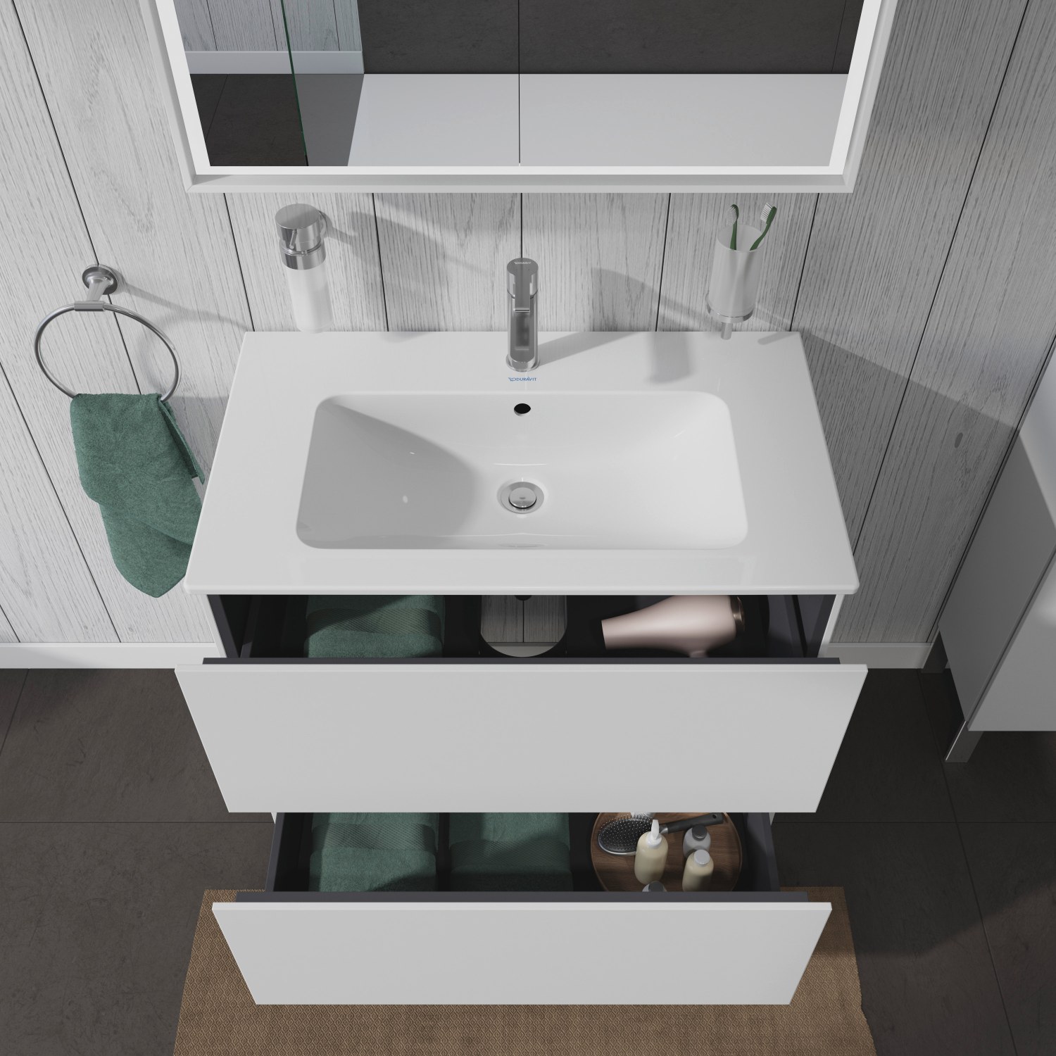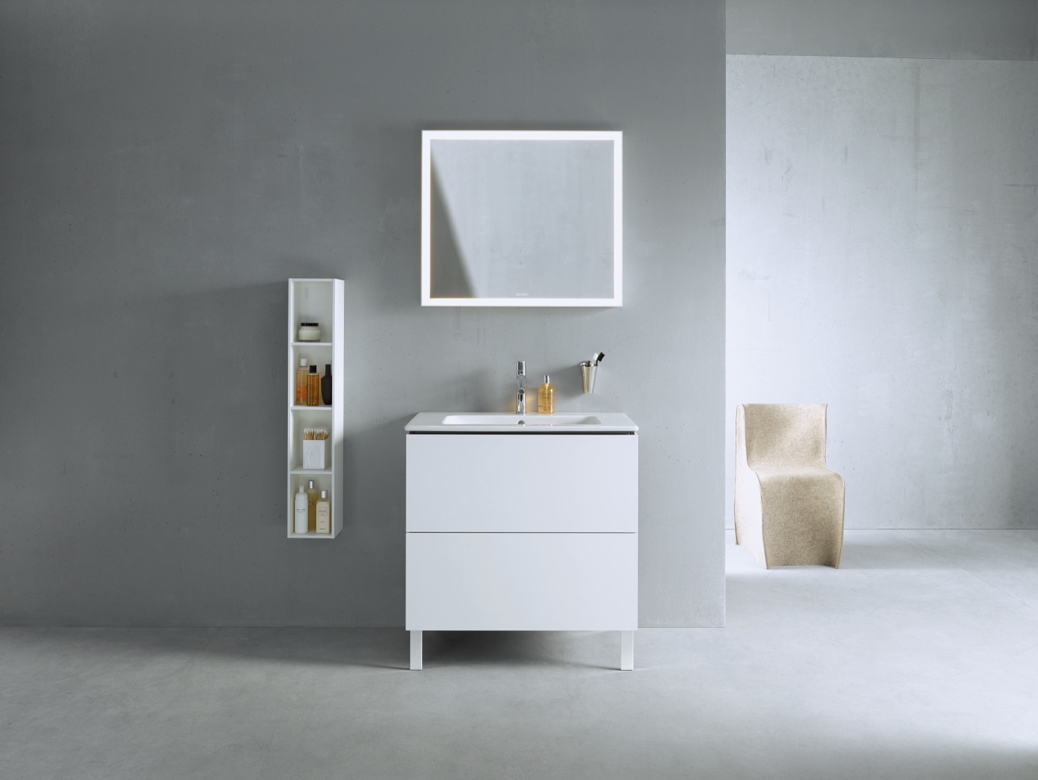 Elegant L-Cube vaskeskab fra Duravit med to skuffer. Perfekt til opbevaring på badeværelset.
