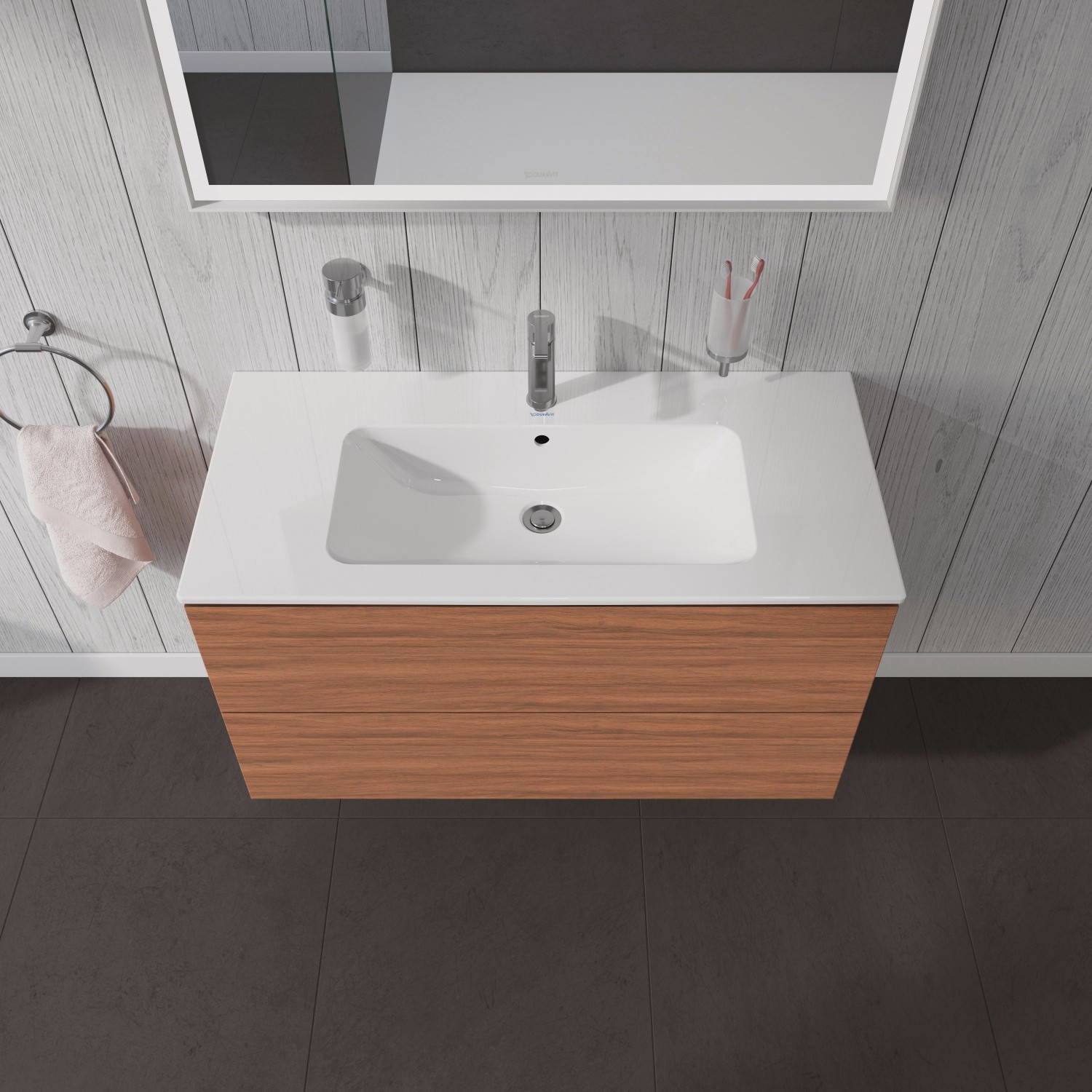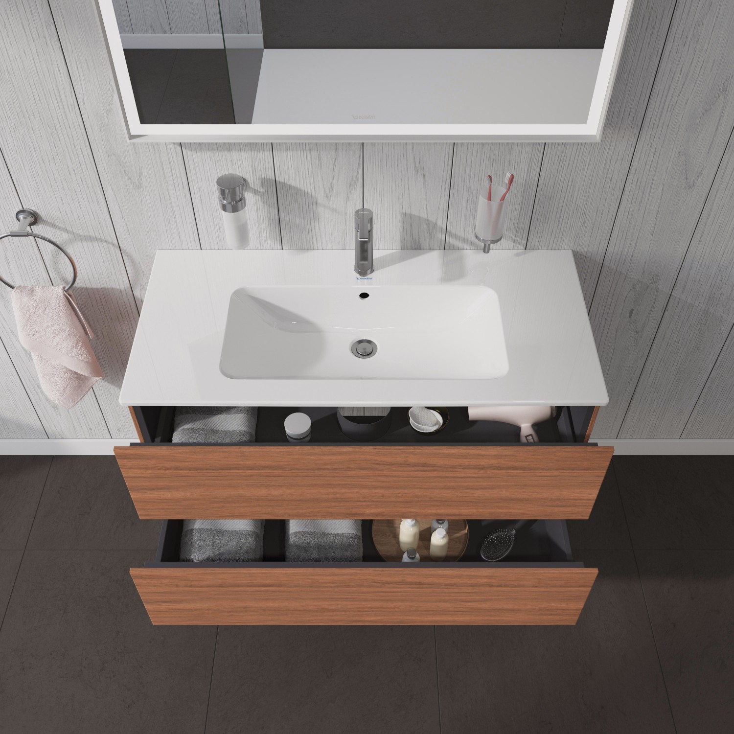 Elegant L-Cube vaskeskab i valnød natur fra Duravit. Perfekt til det moderne badeværelse.