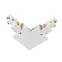 L-samlestykke i hvid til S-TRACK 3-faset skinnesystem fra SLV, med jordleder til højre og DALI-kompatibilitet. Ideel til indbygningsskinner.
