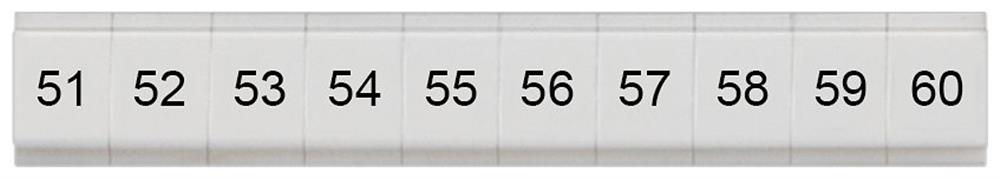 Flad mærkeplade, 51-60, med 4,2 mm klemmebredde og snap-on montering. Hvid, 1,5 mm² klemrække til industrielle applikationer og moderne bygningsinstallation.