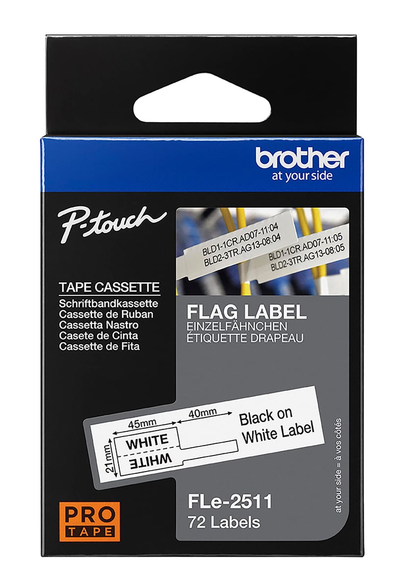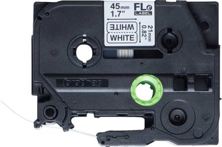 Hvid labeltape med 72 udstansede labels (45 mm x 21 mm efter print, 45 mm x 10,5 mm efter påsætning). Passer til P-touch labelprintere med FLe-logo.