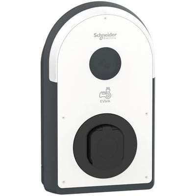 EVlink Pro AC ladeboks fra Schneider Electric, med 22kW kapacitet og T2S stik, sikrer hurtig og effektiv opladning af elbiler. Den har en 6mA DC-overvågningsenhed og JFB-A fejlstrømsafbryder for ekstra sikkerhed. Perfekt til både private og erhverv.