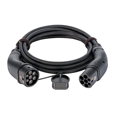 Ladekabel til elbil med 1x type2 han- og 1x type2 hun-stik. 3F 16A, 11kW og 5 meters længde. Max mærkestrøm 20A.