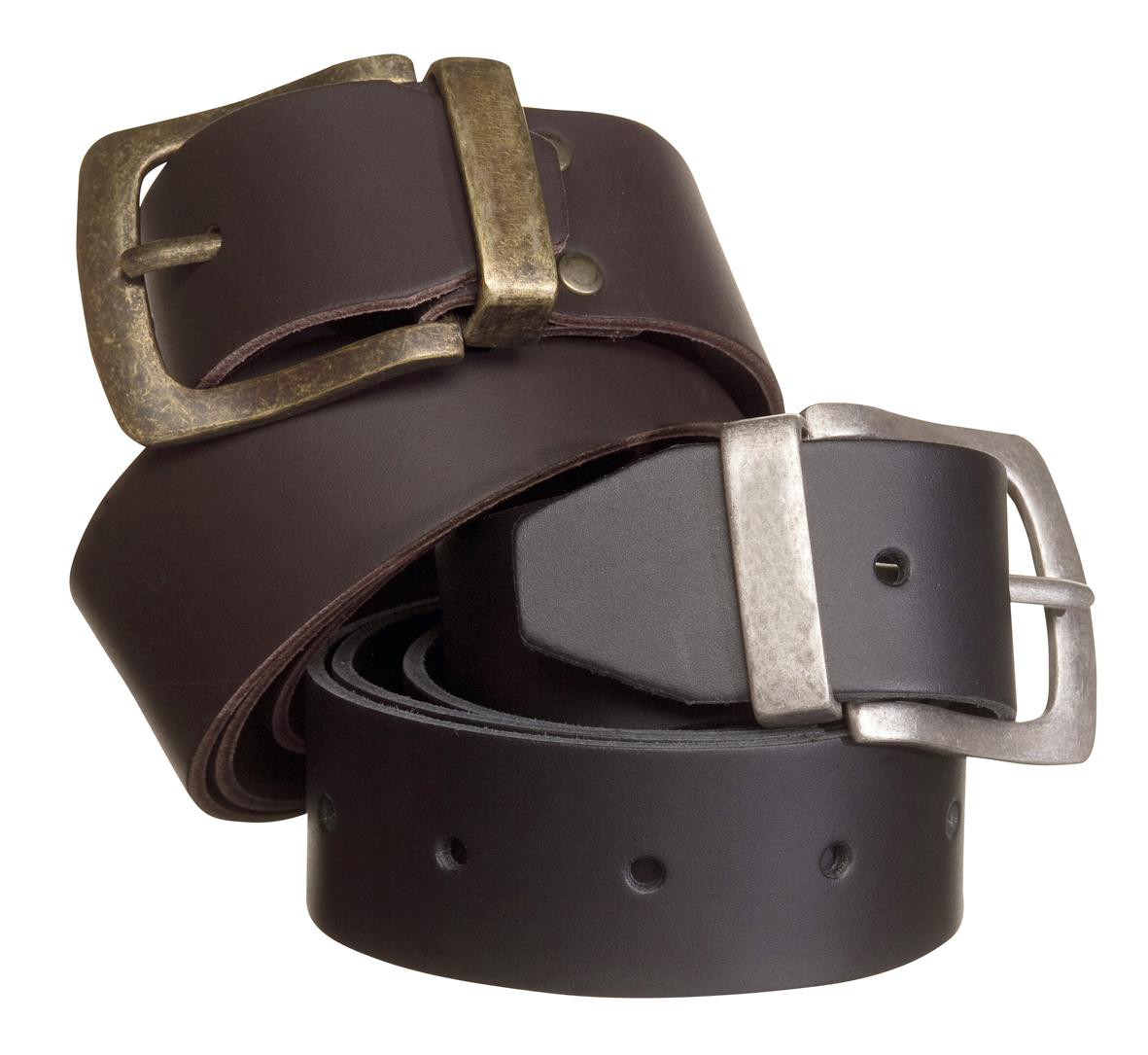 Kraftigt læderbælte med solidt spænde i antikmessing eller antiksølv. Perfekt til arbejdstøjet.